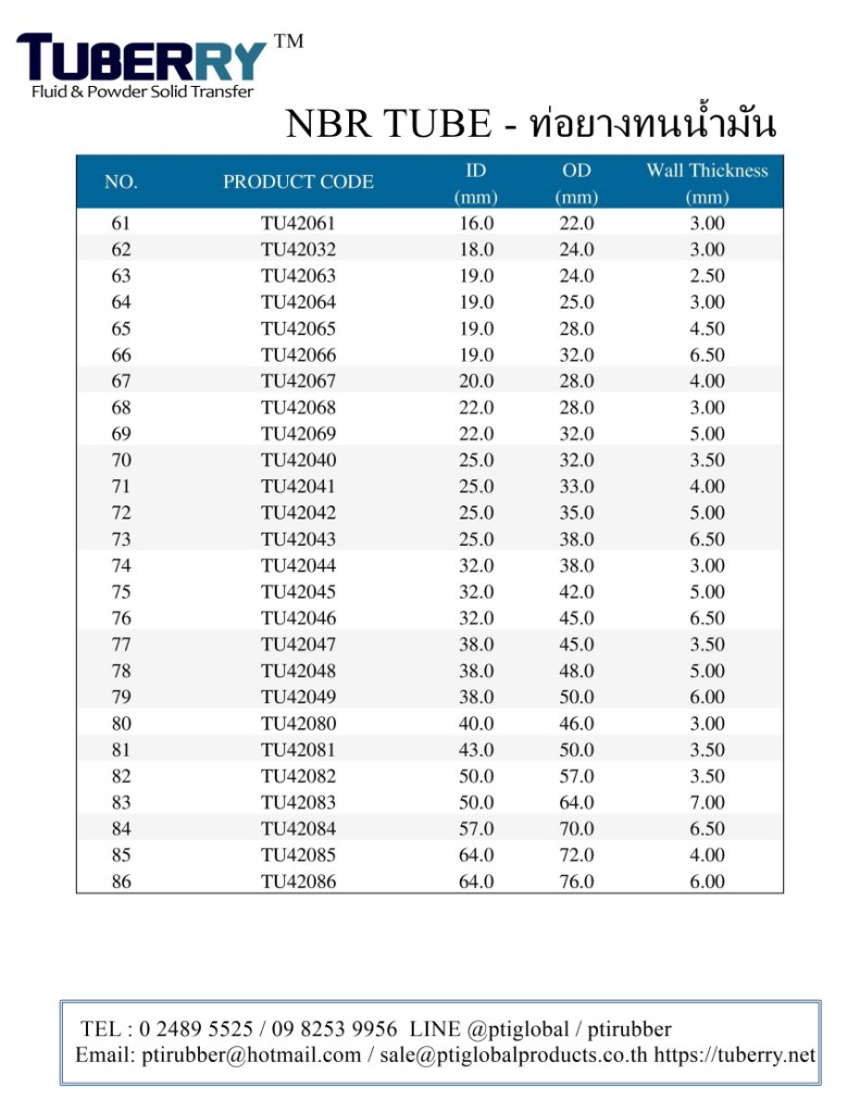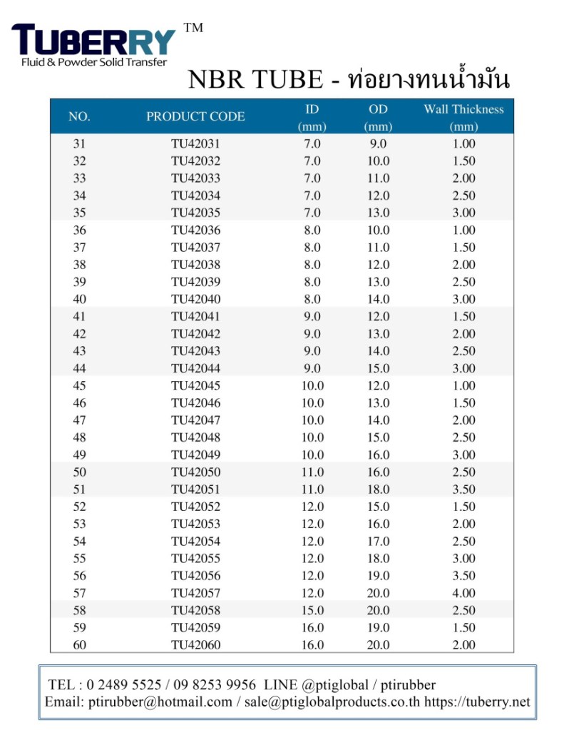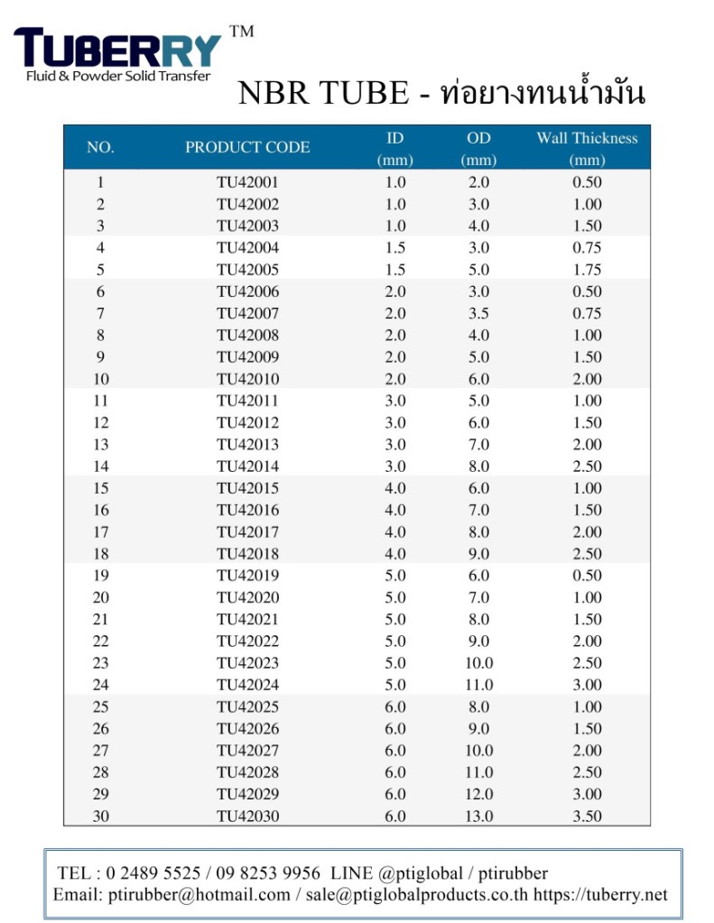 ท่านสามารถสั่งผลิตท่อยางNBR ได้ที่ Tel: 0 2489 5525 MB : 09 2656 8846 / 09 8253 9956 LINE@ @ptiglobal Email: sale1@ptigroups.com / info@ptigroups.com http://www.tuberry.net
