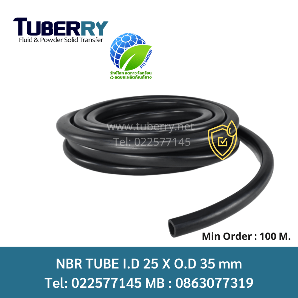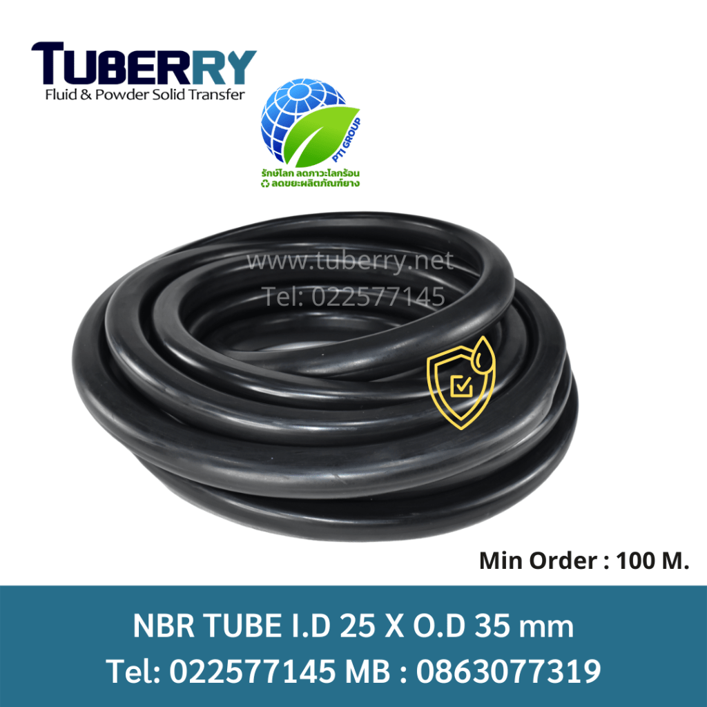 ท่อยางNBR ท่อยางเกรดทนน้ำมัน SIZE : I.D 25XO.D 35 mm เป็นท่อยางที่ผลิตมากจากวัตถุดิบยางNBR ( Nitrile Rubber ) เกรดทนน้ำมัน น้ำมันเชื้อเพลิง น้ำมันพืช น้ำมัสัตว์ เป็นต้น เหมาะสำหรับการใช้งานส่ผ่านของเหลว น้ำมัน ก๊าซ เป็นต้น