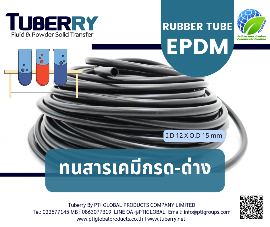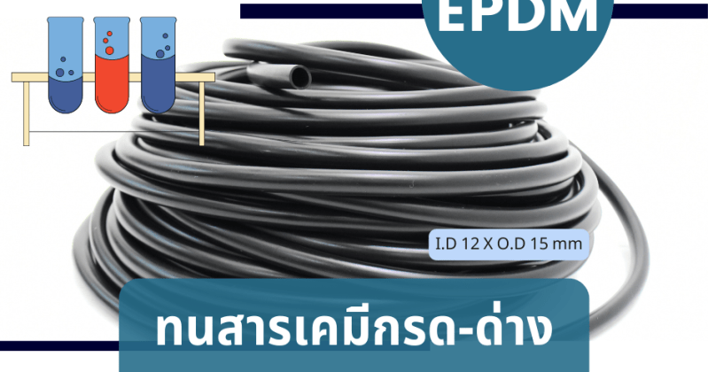 ทนยางEPDM ( EPDM Rubber Tube) เป็นท่อยางที่มีคุณสมบัติทนสารเคมี โดยเฉพาะอย่างยิ่งสารเคมีกรด-ด่าง อาทิเช่น Acids , Acids Organic , Alcohol’s , Aldehydes , Alkalies , Esters (Alkyl Phosphate) เป็นต้น ด้วยเหตุนี้ท่อยาง EPDM จึงนิยมนำมาใช้งานเป็นท่อดูดส่งสารเคมี ส่งผ่านสารเคมี เป็นต้น เราขอแนะนำก่อนเลือกซื้อท่อยาง EPDM สำหรับใช้งานทนสารเคมี ควรระบุ สารเคมีที่ต้องการใช้งาน ความเข้มข้น ก่อนสั่งซื้อทุกครั้ง เพื่อที่ทางผู้ผลิตจะได้เลือกสูตรยางให้เหมาะกับการนำไปใช้งาน และเพื่อความคุ้มค่าสูงสุด