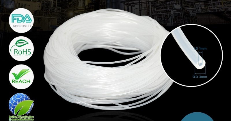 ท่อยางซิลิโคน ( Transparent Silicone Rubber Tube ) ท่อยาง SIZE เล็กที่สุดเท่าที่เคยมีมา I.D หรือรูในเพียง 1 mm และมี O.D หรือความโตนอกอยู่ที่ 3 mm ซึ่ง Process การผลิตไม่ง่ายเลยที่ต้องมีการควบคุมให้ท่อยางมีขนาดเล็ก I.D 1 mm เพื่อนำไปสวมเข้ากับชิ้นส่วนต่างๆขนาดเล็กในโรงงานอุตสาหกรรม