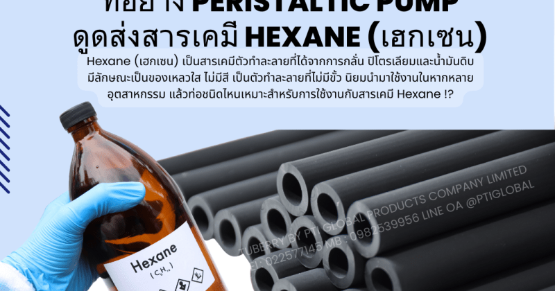 หากคุณกำลังมองหาท่อยาง peristaltic pump สำหรับดูดส่งสารเคมี Hexane (เฮกเซน) สามารถสอบถาม-ปรึกษา และสั่งผลิตท่อท่อยาง peristaltic pump ได้แล้ววันนี้ที่ Tuberry